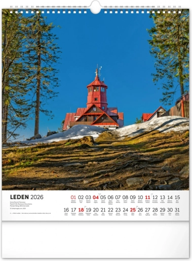 Entdecken Sie jeden Monat den Zauber der tschechischen Landschaft mit diesem einzigartigen Wandkalender. Spazieren in der tschechischen Landschaft 2026 bietet Ihnen: