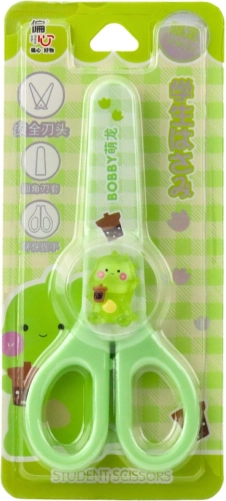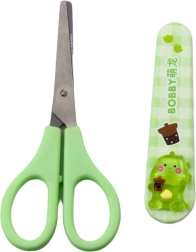 Die Kinderschere im fröhlichen grünen Design ist für kleine Hände gemacht. Dank der ergonomischen Form der Griffe lässt sie sich leicht verwenden und ermöglicht ein präzises Schneiden von Papier und dünnen Materialien, was die manuellen Fähigkeiten der Kinder fördert.