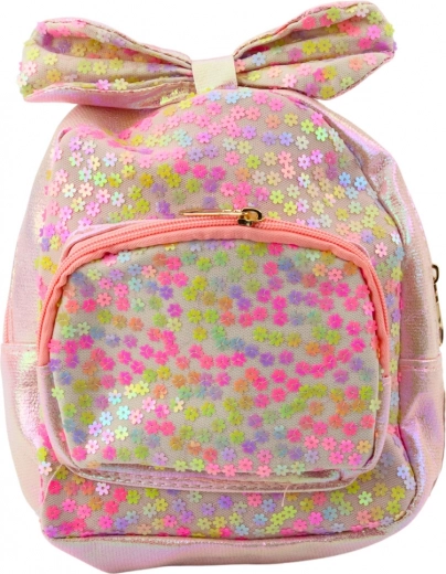 Kinder Rucksack in pastellrosa, verziert mit einer Schleife und Pailletten, wird jedes kleine Mädchen verzaubern. Er besteht aus leichtem synthetischen Material mit glänzenden Pailletten, das strapazierfähig und einfach zu tragen ist. Das Hauptfach mit Reißverschluss bietet ausreichend Platz für Lieblingsspielzeuge, Snacks oder Bücher. Eine kleinere Vordertasche ist für Kleinigkeiten vorgesehen. Dank der dekorativen Schleife und der schimmernden Details wird der Rucksack zu einem besonderen Accessoire unter Kinderaccessoires.