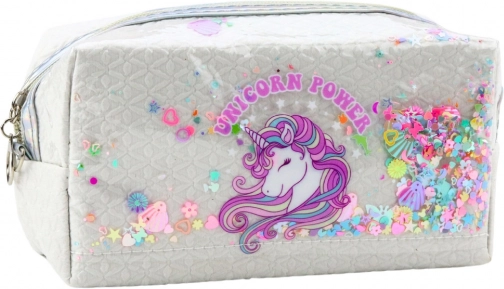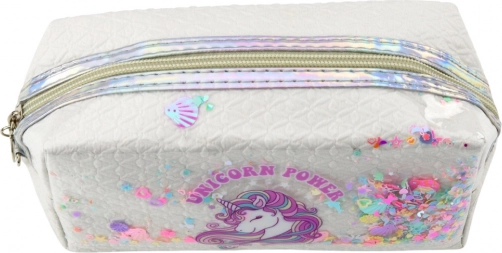 Weißes Schuletui mit Einhorn, 20 cm, mit Konfetti – praktisch und stylisch für Kinder.