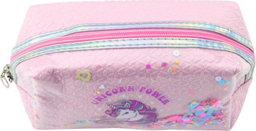 Zauberhaftes rosa Etui mit Einhorn und beweglichen Konfetti für Kinder, die Fantasie lieben.