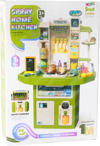 Die große Kinderspielküche Spray Home Kitchen ist die ideale Wahl für kleine Köche. Mit 71 Komponenten ermöglicht sie Kindern freies, kreatives und realistisches Spielen: kochen, backen und servieren, einschließlich Abwasch.