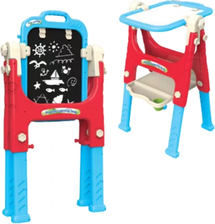 Die Lerntafel 5-in-1 mit Stühlchen wurde entwickelt, um die Entwicklung Ihres Kindes durch Spiel, Lernen und Kreativität zu unterstützen. Sie kombiniert abwischbares Whiteboard, Kreidetafel, Mal-Staffelei, Arbeitstisch und Stauraum in einer farbenfrohen Konstruktion.