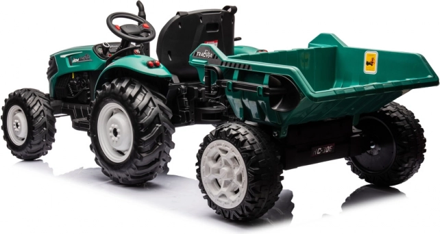 Erleben Sie Fahrspaß mit diesem Akku-Traktor, der mit einem dunkelgrünen Anhänger geliefert wird. Dank der starken 24V-Batterie und der robusten Ausführung ist er ideal für kleine Landwirte und neugierige Entdecker.