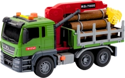Der Lkw im Maßstab 1:14 ist mit beweglichen Teilen und interaktiven Funktionen ausgestattet, darunter Licht- und Soundeffekte – Rückfahrgeräusche, Warnsignal, Hupe und blinkende Warnlichter. Er kann manuell gesteuert werden, der Kranarm hat Tasten zum Anheben und Absenken der Holzstämme, was die Fantasie anregt und feinmotorische Fähigkeiten fördert.