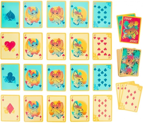 Stitch Spielkarten sind ideal für Spiele am Strand, am Pool oder bei Regen. Dank der spezialisierten wasserdichten Beschichtung der Karten können Sie unbesorgt spielen, ohne Angst vor Wasserschäden. Die Karten sind in einer praktischen Plastikbox verpackt, was den Transport und Schutz erleichtert.