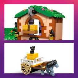 Mit dabei sind die beliebten Charaktere Aliya und Liann (Minipuppen) sowie Victoria und Ella (Mikropuppen), außerdem eine Katze und drei niedliche Ponys. Umfangreiches Zubehör – von Schleifen und Bürsten über Ofen, Kekse und Brombeeren bis hin zu Karotten – unterstützt fantasievolle Geschichten, Pferdepflege und Fütterung. Die LEGO Builder-App ermöglicht Zoomen, Drehen und das Verfolgen des Baufortschritts.