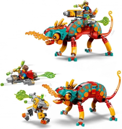 Wähle dein Abenteuer: Baue den feurigen Wächter mit einem Türmchen mit Blaster und vier Shootern oder verwandle ihn in einen schnellen Jet und einen kleinen Mech. Die modularen „Booster“-Zusatzelemente sind mit weiteren Sets der LEGO DREAMZzz Reihe (2025) kompatibel und erweitern die Spielmöglichkeiten.