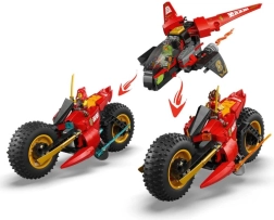 Dieses detailreiche Set bringt spannende Action am Boden und in der Luft. Das zentrale 3-in-1 Ninja-Kampfvehikel lässt sich mühelos in drei eigenständige Maschinen aufteilen: Kais wendiges Motorrad, Wyldfyres feuriges Motorrad und Fraks aerodynamischen Jet mit zwei Shootern für dynamisches Spiel. Der Aufbau und das Umbauen sind intuitiv und machen Spaß.