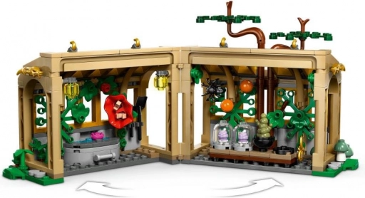 Baue ein detailreiches Gewächshaus/Klassenzimmer, das sich für besseren Zugang und zum Spielen aufklappen lässt. Die zwei abnehmbaren Tische sind mit magischen Pflanzen und Werkzeugen ausgestattet, während aus dem „zerbrochenen“ Fenster ein Baum hervorlugt. Die speziellen Alraunen können aus den Töpfen genommen werden und die Minifiguren können sie an den Blättern halten – ideal für ikonische Szenen aus HOGWARTS.