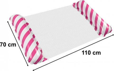 Rosa aufblasbare Matratze mit Streifen für komfortable und stilvolle Entspannung auf dem Wasser, leicht und einfach zu verstauen.