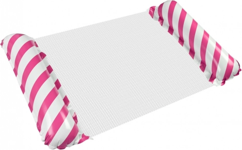 Die aufblasbare Matratze mit bequemer Konstruktion erlaubt es Ihnen, auf dem Wasser zu sitzen oder zu liegen. Das Design mit rosa-weißen Streifen ist gut sichtbar, was die Attraktivität der Matratze erhöht. Nach dem Ablassen der Luft ist sie leicht zu verstauen und somit ideal für alle Reisenden.