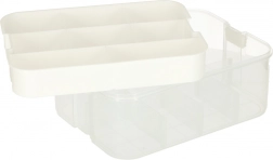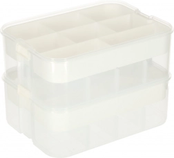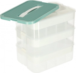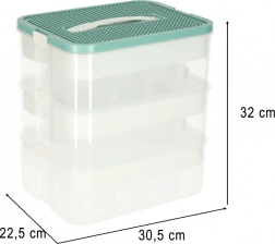 Der Organizer bietet flexible Aufbewahrungsmöglichkeiten dank seiner drei Ebenen, was es ermöglicht, alle Ihre Sachen organisiert und übersichtlich zu halten. Es ist aus hochwertigem Kunststoff gefertigt, der Langlebigkeit und Widerstandsfähigkeit garantiert.