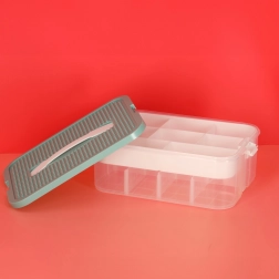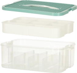 Der Organizer ist aus langlebigem Kunststoff gefertigt, während das blaue Deckel ein attraktives Aussehen bietet.