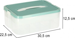 Gehäuse und Einsatz: transparent, weiß; Deckel: türkis