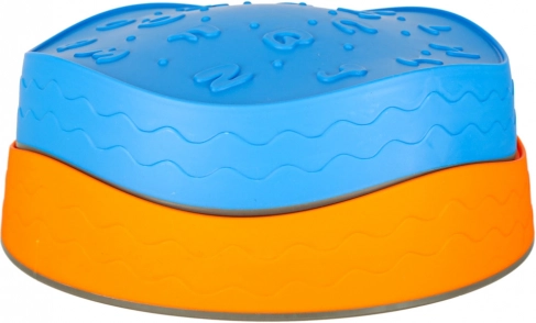 Dieses Set enthält fünf verschiedenfarbige Steine: rot mit Ornamenten, gelb mit Formen, orange mit Fruchtmotiven, blau mit Buchstaben und grün mit Zahlen. Jeder Stein besteht aus robustem Polyurethan, das Langlebigkeit und Beständigkeit bietet.