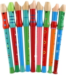 Die Flöte ist mit bunten Mustern gestaltet, die kleine Musiker ansprechen und inspirieren.