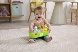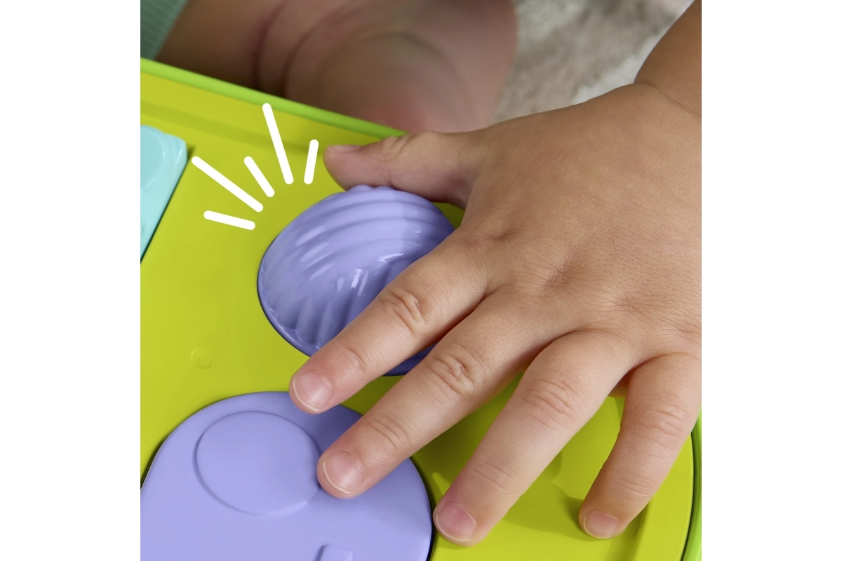 Die robuste Konstruktion, abgerundete Kanten und leicht greifbare Bedienelemente sind perfekt auf kleine Hände abgestimmt. Verschiedene Texturen, Formen und Farben stimulieren die Sinneswahrnehmung und halten die Aufmerksamkeit des Kindes – beim selbstständigen wie auch gemeinsamen Spiel.