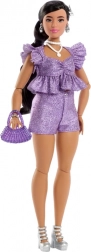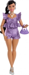 Entdecken Sie die Modewelt mit der Barbie Deluxe Model in glitzerndem violettem Outfit, die auf den ersten Blick begeistert. Dank des gelenkigen Körpers ermöglicht sie natürliche Posen, während zahlreiche Accessoires – von silbernen Sandalen bis zur Handtasche und Schmuck – die Fantasie anregen und eigene Modegeschichten entstehen lassen.