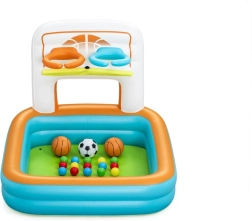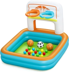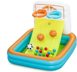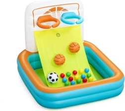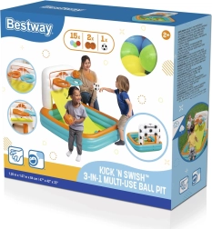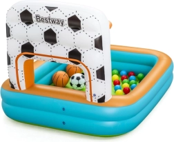 Das aufblasbare Spielzentrum Bestway Kick 'N Swish™ ist die ideale Wahl für aktive Unterhaltung Ihrer Kinder. Dieses multifunktionale Becken kombiniert Basketballkörbe mit einer Rücklaufbahn, die einen reibungslosen Spielablauf gewährleistet, und ein Mini-Tor für das Zielsicherheitstraining. Fügen Sie 15 bunte Bälle hinzu und verwandeln Sie den Pool in ein buntes Spielparadies, in dem Kinder spielen und entspannen können.