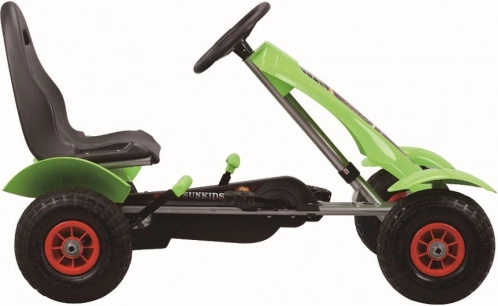 Entdecken Sie das Fahrvergnügen mit unserem Pedal-Go-Kart, das ein tolles Erlebnis für Kinder bietet. Mit aufblasbaren Rädern und Handbremse erhält Ihr kleiner Rennfahrer Kontrolle und Sicherheit bei jeder Fahrt. Dieses Fahrzeug hat folgende Eigenschaften: