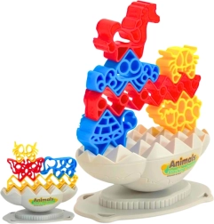 Das Set enthält 24 bunte Tierfiguren, die sorgfältig übereinander gelegt werden müssen. Das Spiel besteht darin, das Gleichgewicht der gesamten Struktur zu halten, was Präzision und Geschicklichkeit erfordert. Die Spieler können zwischen zwei Schwierigkeitsgraden wählen – einfach (mit stabiler Unterlage) und fortgeschritten (mit einer sich um 360° drehenden Unterlage).