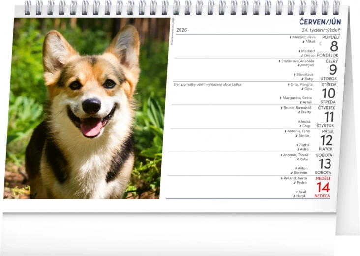 Feiern Sie den Namenstag mit Ihrem Hund mit diesem Kalender, der Ihnen jeden Tag Hundenamen bietet, einschließlich des tschechischen und slowakischen Kalendariums, Mondphasen und Platz für Notizen.