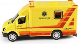 Die Rettung ist unterwegs! Dieser realistische Rettungswagen aus Metall und Kunststoff begeistert mit einem Rückzug-Aufziehmotor jeden kleinen Retter. Einfach nach hinten ziehen, loslassen und auf eine abenteuerliche Mission mit rasanter Action und viel Spaß starten.