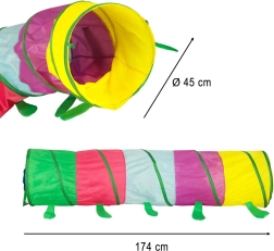 Dieser niedliche Tunnel für Kinder ist eine großartige Ergänzung für Kinderspiele, Integration und sensomotorische Entwicklung. Kinder ab 3 Jahren können unter Aufsicht von Erwachsenen spielerisch mitmachen. Der Spielzeug-Hindernisparcours unterstützt die Entwicklung motorischer Fähigkeiten und die Bewegungskoordination.
