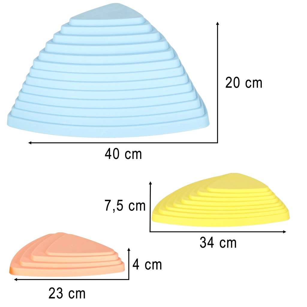 Diese Steine stimulieren die Motorik und das Gleichgewicht der Kinder, unterstützen das Lernen des stabilen Gehens und verbessern die allgemeine körperliche Fitness.