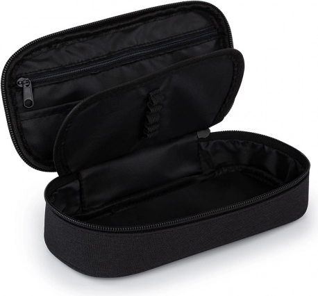 Das Schuletui UNICOLOR schwarz ist hochfunktionell und designmäßig einfach. Dank seiner stabil abschließbaren Reißverschlüsse und Klappe mit festen Schlaufen bietet es eine sichere Aufbewahrung Ihrer Schreibutensilien.