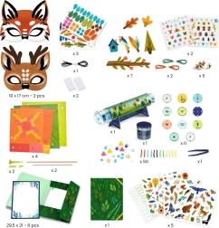 Dieses Kreativ-Set von Djeco ist eine großartige Möglichkeit, Zeit mit Kindern zu verbringen, deren Feinmotorik zu entwickeln und die Schönheit der Natur wahrzunehmen. Es enthält eine breite Palette an Materialien, die für das Malen, Kleben und andere künstlerische Aktivitäten benötigt werden.
