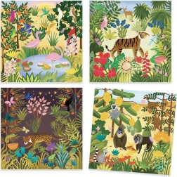 Entdecken Sie die Welt der Kunst mit unserem Set von Abreibebildern, die sich aus dem einzigartigen Stil des bekannten Malers Douanier Rousseau inspirieren lassen: