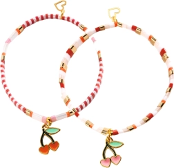 Die Freundschaftsbänder Kirschen DJECO Me&You sind das perfekte Geschenk für Freunde, die ihre freundschaftliche Verbindung bewahren möchten. Ihr elegantes und verspieltes Design verleiht jedem Outfit Charme und betont die Einzigartigkeit jedes Trägers.