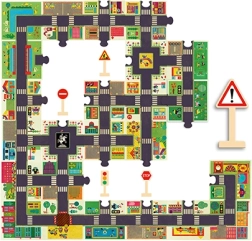 Dieses Spielzeug fördert stark die Kreativität und Vorstellungskraft der Kinder und hilft ihnen gleichzeitig, sich die Grundregeln des Straßenverkehrs auf spielerische Weise anzueignen. Die robuste Ausführung aus hartem Karton sorgt dafür, dass das Puzzle langlebig ist und für wiederholtes Spielen geeignet. Nach dem Zusammenbauen misst es 100 x 63 cm, was ausreichend Platz für das Spielen mit Autos und anderen Accessoires bietet.