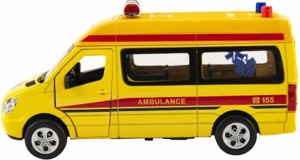 Diese detailreiche Ambulanz kombiniert ein stabiles Metall-Chassis mit widerstandsfähigen Kunststoff-Elementen und ist ideal für kreatives Spielen. Dank Rückziehantrieb fährt sie ohne Fernsteuerung los, während öffnende Vorder- und Hecktüren die Authentizität und Interaktivität erhöhen.