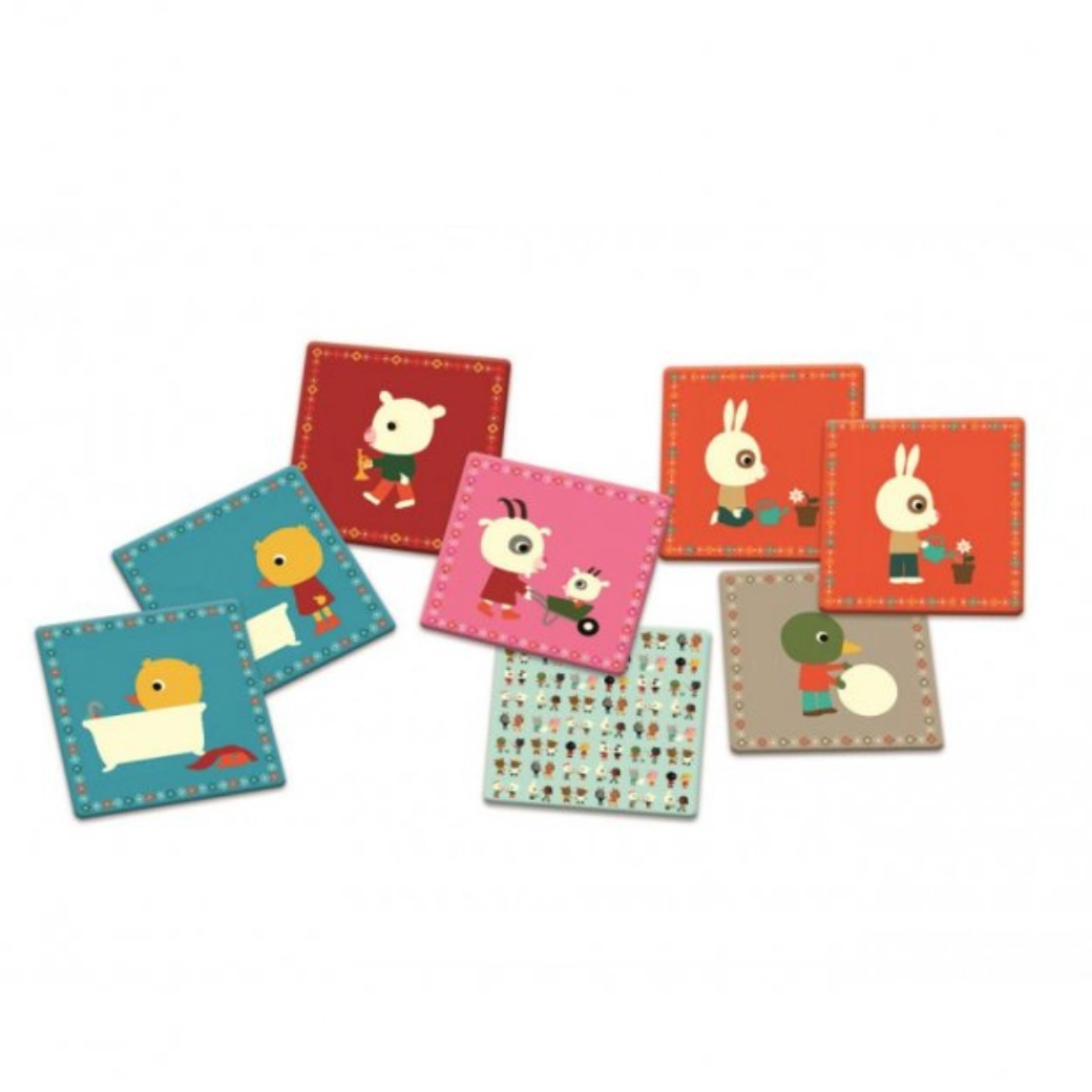Pexeso Freunde in Aktion der Marke Djeco bietet Stunden voller Spaß für Kinder und Erwachsene mit interaktiven Karten und bunten Illustrationen, die Gedächtnis und Aufmerksamkeit stimulieren.