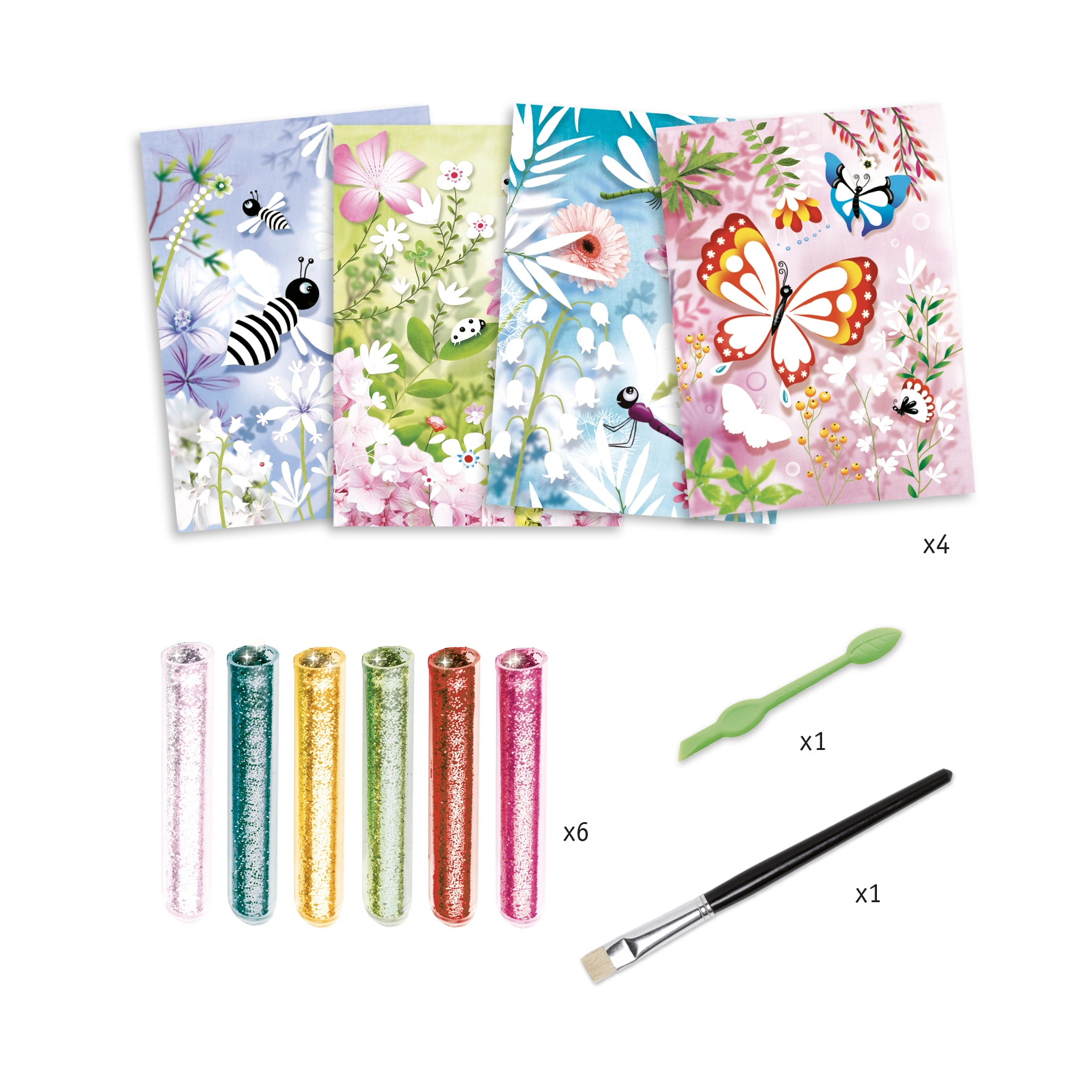 DJECO Sandstrahlen Glitzernde Schmetterlinge ist ein kreatives Set, das Kindern ermöglicht, wunderschöne und leuchtende Schmetterlinge durch Sandstrahlen zu gestalten.