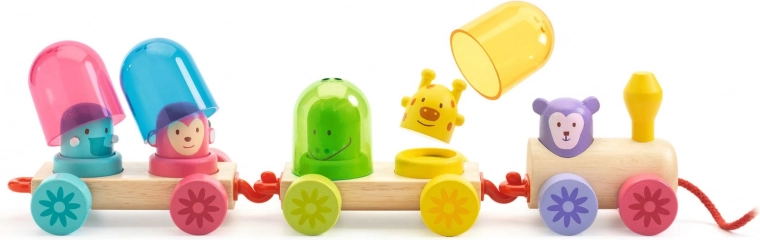Der Djeco Rainbow Train ist ein Zug, der Spaß mit Lernen verbindet. Er besteht aus neun Holzteilen und vier transparenten Farbkupeln, die den Kindern das Mischen von Farben ermöglichen. Kinder können Farbänderungen beobachten und so ihre Kreativität und ihr Verständnis für Farbzusammenstellungen entwickeln. Der Zug ist zum Ziehen an einer Schnur gedacht, was die motorischen Fähigkeiten und die Hand-Auge-Koordination der Kinder fördert.