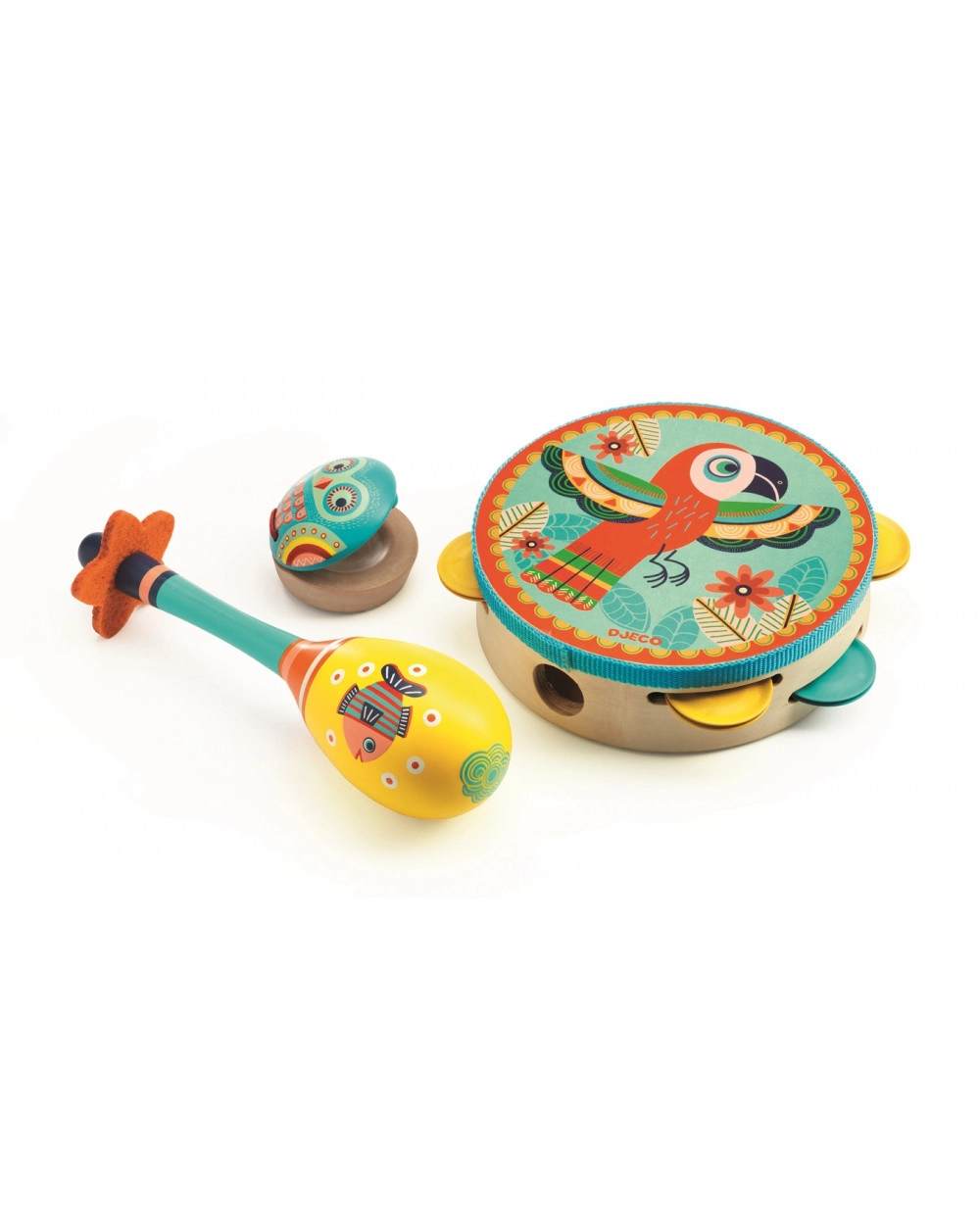 Das Musikset Djeco enthält eine vielfältige Auswahl an Instrumenten, die perfekt für kleine Hände angepasst sind. Jedes Instrument wurde sorgfältig entworfen, um sicher und einfach für Kinder in der Anwendung zu sein. Mit diesem Set können kleine Musiker verschiedene Klänge und Rhythmen erforschen, was ihr Rhythmusgefühl und ihre Koordination fördert.
