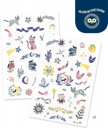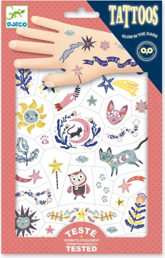 Tätowierungen Glücksträume von Djeco ist ein bezauberndes Set glitzernder Tattoos, das jede Kinderparty aufpeppt und in ein unvergessliches Erlebnis verwandelt.