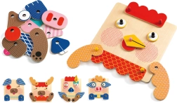 Entdecken Sie die kreative Welt von Djeco mit diesem großartigen Holzset zur Erstellung von Tiergesichtern. Kinder können aus verschiedenen Teilen eine unbegrenzte Anzahl von lustigen Tiergesichtern zusammenstellen.