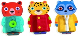 Ein lustiges Djeco-Spielzeug zur Förderung der Feinmotorik bei Kindern. Mit diesem Spielzeug lernen Kinder verschiedene Verschlussarten wie Knöpfe, Reißverschlüsse und Schnallen.