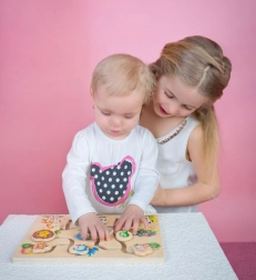 Das hölzerne Labyrinth mit Tieren ist ein ideales Hilfsmittel zur Entwicklung kindlicher Fähigkeiten bereits im frühen Alter. Dank der farbenfrohen Motive und beweglichen Teile verstehen Kinder leicht, wie man den richtigen Kopf dem Tierkörper zuordnet, und trainieren gleichzeitig die Hand-Auge-Koordination.