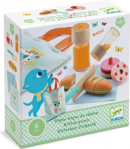 Genießen Sie ein lustiges Picknick mit diesem bezaubernden Essenset von Djeco, das perfekt für kleine Katzenliebhaber ist. Ideal für das Spielen drinnen und draußen!