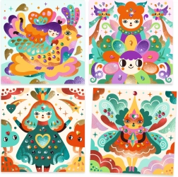 Folienbilder von DJECO bieten nicht nur schönen Spaß, sondern auch eine Möglichkeit, die Kreativität und Geschicklichkeit der Kinder zu fördern. Dieses Set enthält: