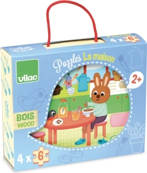 Vilac Holzpuzzle Haus – 4 Sets mit je 6 Teilen im Kasten