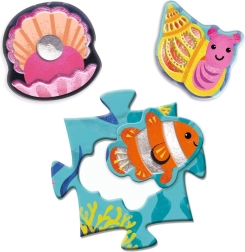 Suchen Sie ein kreatives Spiel, das Kinder beschäftigt und gleichzeitig ihre Fähigkeiten fördert? Das Djeco Tactilo Meer Puzzle bietet ein großes Bild von ca. 70 × 50 cm sowie 8 separate, geformte Teile in Form von Fischen, Krabben und weiteren Meerestieren, die an die richtigen Stellen eingesetzt werden. Kinder üben spielerisch das Erkennen von Formen und die Konzentration.