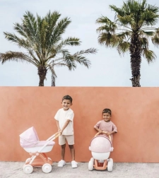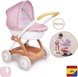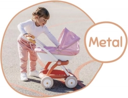 Der Baby Nurse Wagen besteht aus einem hochwertigen Metall- und Kunststoffrahmen, der Langlebigkeit und Stabilität gewährleistet. Dank seines klappbaren Verdecks kann er bequem an die Bedürfnisse Ihres Kindes angepasst werden. Die Oberfläche des Wagens besteht aus einem speziellen Stoff, der leicht zu reinigen ist – ein Schwamm und etwas Wasser genügen.