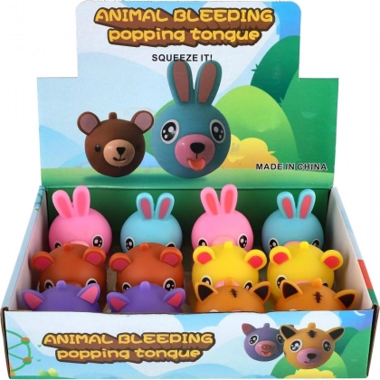Gummitierchen mit Quietscher und ausfahrbarem Zunge ist ein lustiges Spielzeug, das jeden zum Lachen bringt! Beim Drücken quietscht es und streckt die Zunge heraus - ideal für Spielzeugspaß und Förderung der Feinmotorik.